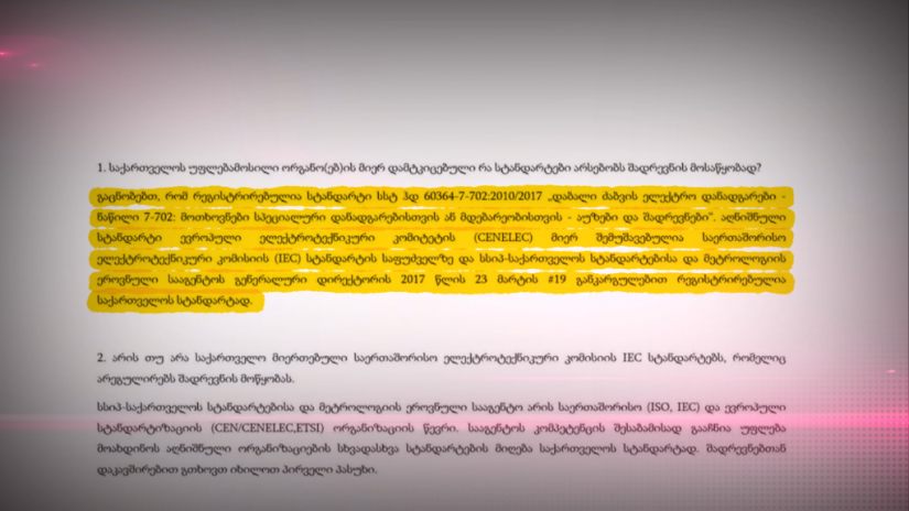 "ნაციონალური მოძრაობის" განმარტებით, ეკონომიკის სამინისტროდან გამოთხოვილ დოკუმენტში წერია, რომ საქართველო საერთაშორისო ელექტროტექნიკური კომისიის წევრია, რაც ქვეყანას ავალდებულებს, რომ შადრევნები საერთაშორისო სტანდარტით მოაწყოს, თუმცა ეს არ იყო გათვალისწინებული.