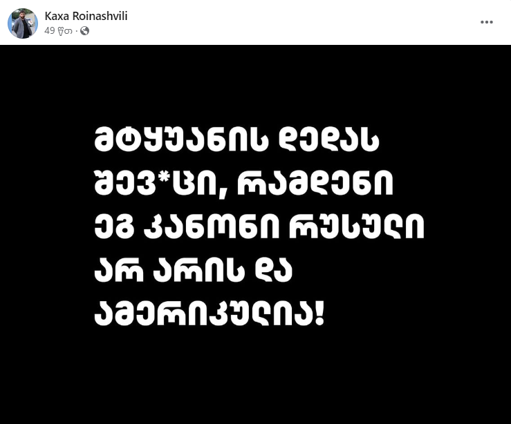 ქარელის საკრებულოს დეპუტატი ქართული ოცნებიდან, მისი პარტიის მხარდაჭერილ რუსულ კანონპროექტს გინებითა და ბილწსიტყვაობით იცავს და პოსტს ფეისბუქ გვერდზე აქვეყნებს.