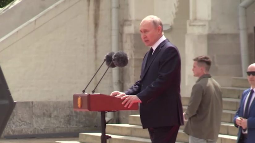 პუტინი რუსეთის თავდაცვის სამინისტროს, რუსეთის გვარდიის, FSB-ს, შინაგან საქმეთა სამინისტროს და FSO-ს სამხედროებს ხვდება, რომლებმაც პრიგოჟინის შეიარაღებული აჯანყების მცდელობა "აღკვეთეს". მან წუთიერი დუმილით პატივი მიაგო იმ მფრინავების ხსოვნას, რომლებიც აჯანყების დღეს დაიღუპნენ.