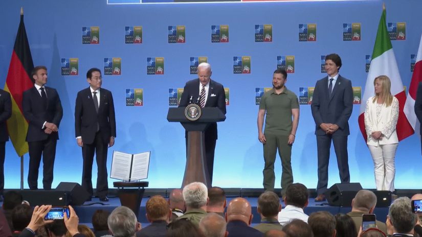 ლიეტუვის დედაქალაქში ხელი მოეწერა G7-ის წვერი ქვეყნების ერთობლივ დეკლარაციას უკრაინის უსაფრთხოებაზე. პრესკონფერენციას შვიდეულის წევრი ყველა ქვეყნის წარმომადგენელი, ევროპული საბჭოს პრეზიდენტი შარლ მიშელი და ევროკომისიის პრეზიდენტი ურსულა ფონ დერ ლაიენი ესწრებოდნენ. მათ გვერდით იდგა ვოლოდიმირ ზელენსეკი.