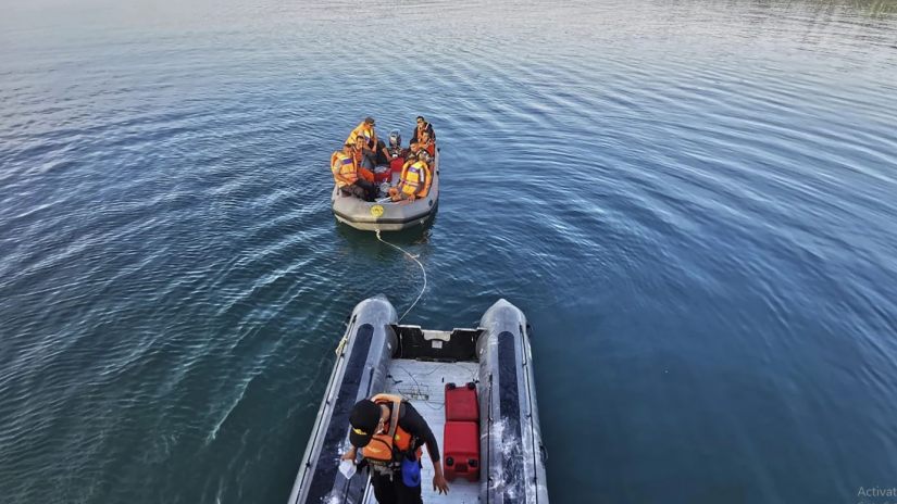 დაკარგული ადამიანების სამძებრო სამუშაოებში ჩართულია სამი გასაბერი და ორი სათევზაო ნავი, ასევე ექვსი მყვინთავი.