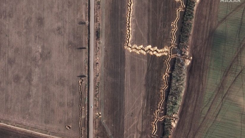 ვიდეო გადაღებულია რუსეთის სამხედრო პოზიციიდან და ჩანს, უკრაინული სამხედრო მანქანა, რომელიც მიემართება თხრილისკენ ე.წ. "დრაკონის კბილების" დიდი რიგის წინ.