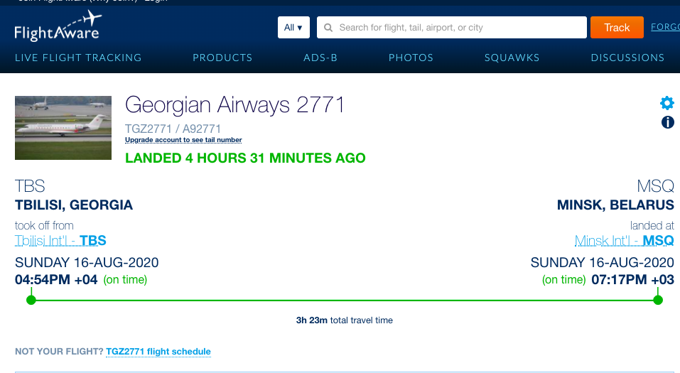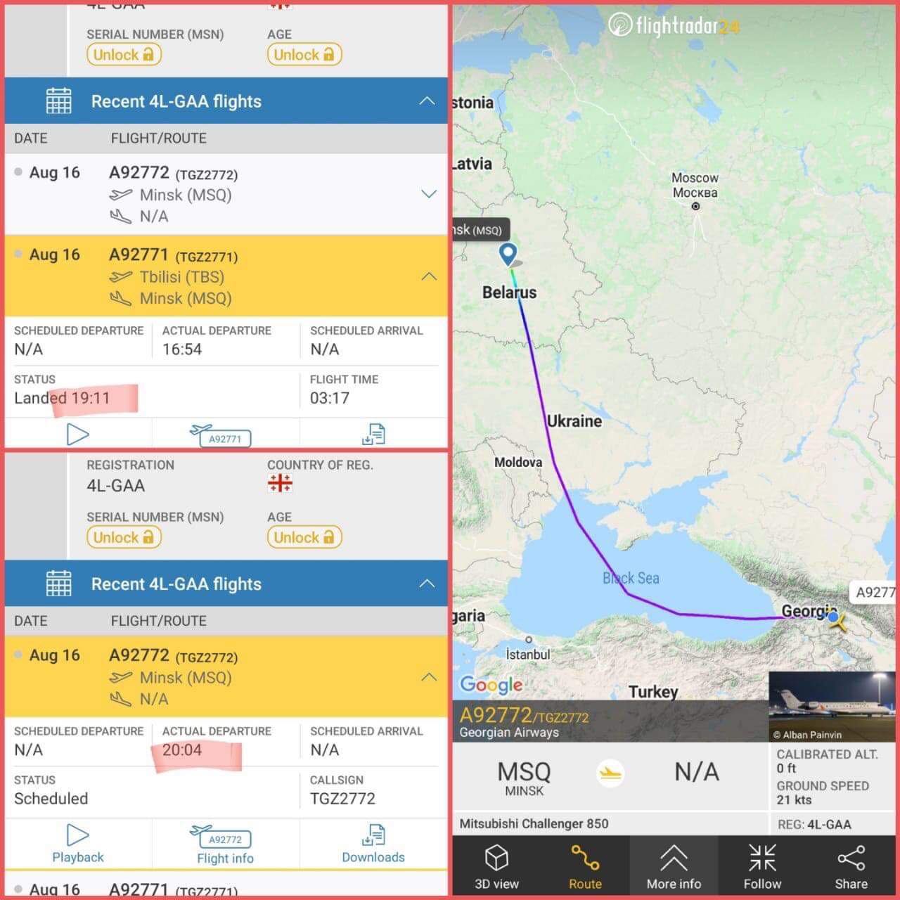 მიუხედავად იმისა, რომ საქართველოს საერთაშორისო აეროპორტში არ დაადასტურეს 16 აგვისტოს თბილისი-მინსკისა და ასევე 16 აგვისტოს მინსკი-თბილისის რეისები, სპეციალურ, რეისების რადარებით გაკონტროლების საძიებო სისტემებში იძებნება ისეთი ფრენების ჩამონათვალი, რომლებიც საქართველოს ავიახაზებს აქვს შესრულებული.
