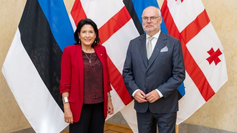 "შეხვედრა ტალინში ესტონეთის პრეზიდენტთან ალარ კარისთან" - წერს სალომე ზურაბიშვილი.
