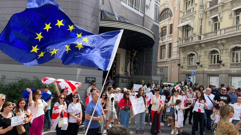 კი ევროპას! არა რუსულ კანონს! - ქართველმა ემიგრანტებმა მადრიდში რუსული კანონის საწინააღმდეგო აქცია გამართეს.