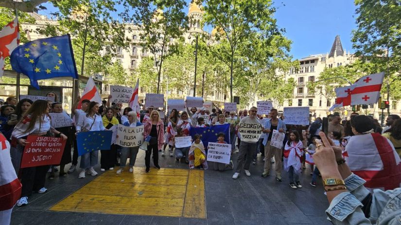 "ქართველთა ცეცხლი აინთო, ამ დროს ვიღაცას აენთო," - ბარსელონაში ქართველმა ემიგრანტებმა რუსული კანონის საწინააღმდეგო აქცია გამართეს.