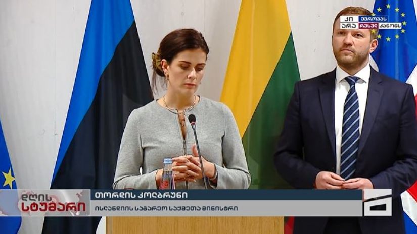 მე წარმოვადგენ ისლანდიას, რომელიც არ არის ევროკავშირის წევრი ქვეყანა და ამიტომ, მე ცოტა განზე განდგომილის პოზიციიდან გეტყვით. ვიცი, რომ ბალტიის ქვეყნებს აქვთ კარგი გამოცდილება. ის, რაც ხდება ყოველდღიურად, ის ფასეულობები, რომლებსაც ჩვენც ვიზიარებთ, გვიჩვენებს, რომ ადამიანებმა გადაწყვეტილება მიიღეს. ჩვენ ჩამოვედით, როგორც საქართველოს მეგობრები, ჩამოვედით იმისთვის, რომ გამოგიცხადოთ მხარდაჭერა, იმისთვის, რომ მოგისმინოთ და გეკამათოთ. ჩვენ შევხვდით სხვადასხვა წრეების წარმომადგენლებს მთავრობასა და ოპოზიციაში და, როგორც იცით, ის გზა, რომელიც აირჩია მთავრობამ, არ არის მხოლოდ კანონზე, ეს ბევრს ნიშნავს, ჩვენ ჩამოვედით როგორც ბალტიის ქვეყნების ჯგუფი, რამდენიმე წლის წინ როცა ბატიისპირეთმა აირჩია ეს გზა, ჩვენ მათ დავუჭირეთ მხარი. არსებობს ამ ჯგუფში 8 ქვეყანა და ჩვენ ყველას ერთნაირი პოზიცია გვაქვს ევროპასთან დაკავშირებოთ. ჩემთვის დიდი პატივი იყო ამ ჯგუფის წევრობა, - ამბობს თორდის კოლბრუნი. [სინქრონული თარგმანი]