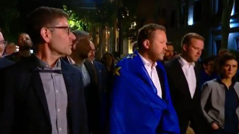 ლიეტუვის, ესტონეთისა და ისლანდიის საგარეო საქმეთა მინისტრები რუსთაველის გამზირზე მიმდინარე მსვლელობას შეუერთდნენ. ისინი რუსული კანონის მოწინააღმდგე ქართველ ხალხთან ერთად პარლამენტისკენ მიემართებიან, სადაც, არსებული ინფორმაციით, აქციის მონაწილეებისთვის მიმართვასაც გეგმავენ.