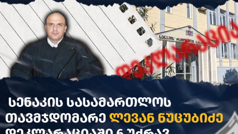 ორგანიზაცია აღნიშნავს, რომ ევროკომისიის რეკომენდაციის თანახმად, ლევან ნუცუბიძე, როგორც სენაკის რაიონული სასამართლოს თავმჯდომარე, კეთილსინდისიერების შემოწმების მექანიზმს უნდა დაექვემდებაროს.