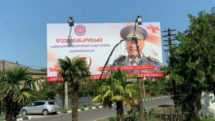 სამტრედიაში, "ნაციონალური მოძრაობის" მაჟორიტარი დეპუტატობის კანდიდატის, დევი ჭანკოტაძის საარჩევნო ბანერი საღებავით დასვარეს.