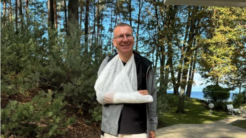 ლატვიის პრეზიდენტი ველოსიპედიდან გადმოვარდა და ხელი დაიზიანა. ფოტო შეხვეული ხელით, სოციალურ ქსელში თავად ედგარ რინკევიჩმა გაავრცელა.