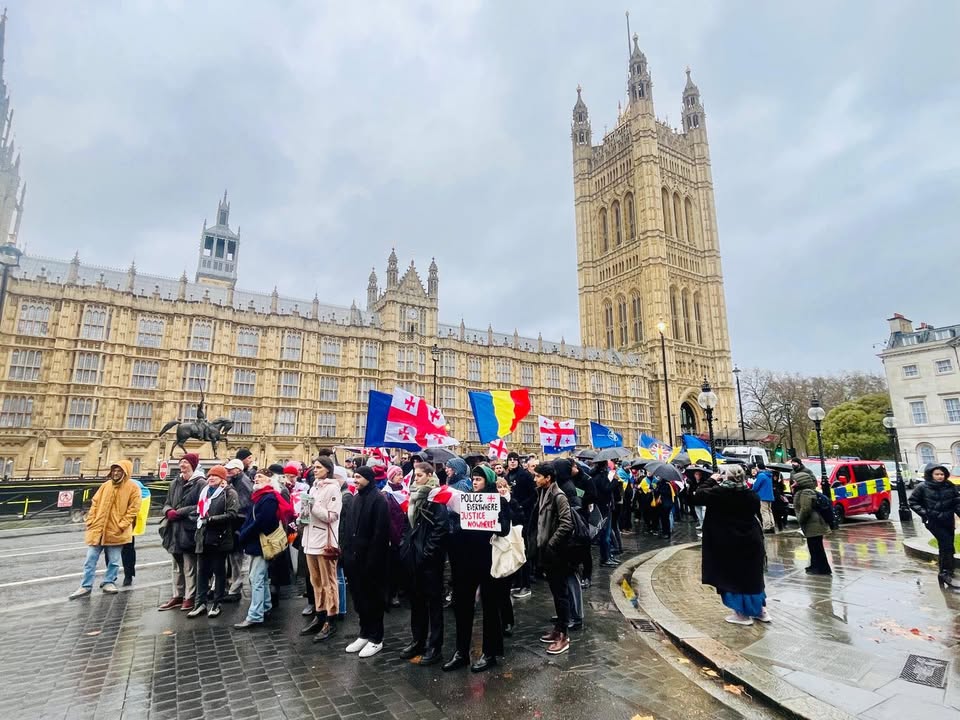 ემიგრანტები საქართველოსა და ევროკავშირის დროშებით, შეიკრიბნენ ლონდონშიც.