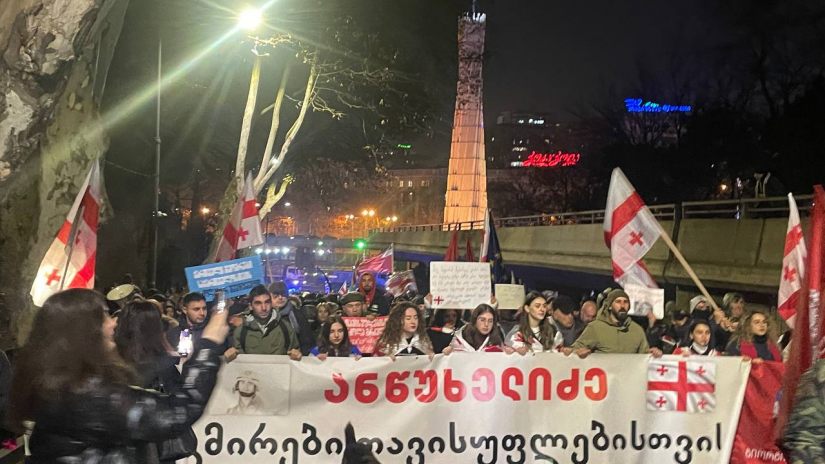 "ჩვენ ვართ გიორგი ანწუხელიძის ქვეყნიდან და მორალური უფლება არ გვაქვს, რომ ჩავბარდეთ რუსეთს. გიორგი აწამეს, იმიტომ რომ ქართულ დროშას არ გადაუარა ფეხით - სასტიკად აწამეს რუსებმა. ეს იყო 2008 წელს და დღეს, 2024 წელს ჩვენ კიდევ გარუსების საფრთხის წინაშე ვართ. ჩვენ გვმართავს კრემლი. ქართველი ხალხი არასდროს შეეგუება გარუსებს, რუსული რეჟიმს აქ დამყარებას. შესაბამისად, გვინდა, რომ პრორუსული ხელისუფლება გავისტუმროთ. ვითხოვთ, გაყალბებული არჩევნების ხელახალ ჩატარებას, ოღონდ სამართლიანად და ვითხოვთ პოლიტპატიმრების გათავისუფლებას", - თქვა აქციის ერთ-ერთმა მონაწილემ.