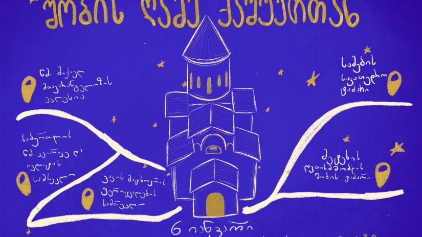 20:30-ზე ყველა ჯგუფი ერთდროულად დავიწყებთ მსვლელობას ქაშუეთის მიმართულებით. შობის ღამეს სწორედ აქ შევხვდებით, ერთმანეთის მხარდამხარ, ანთებული სანთლებითა და ალილოს სიმღერით."