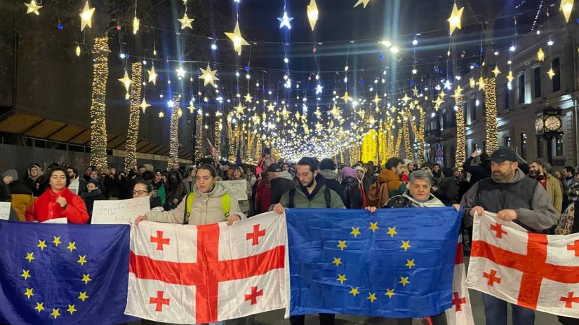 რუსთაველზე მსვლელობით მივიდნენ აგრარული და თავისუფალი უნივერსიტეტის სტუდენტები, ამ წუთებში იმართება კაცების შოუს ფანების მარში.