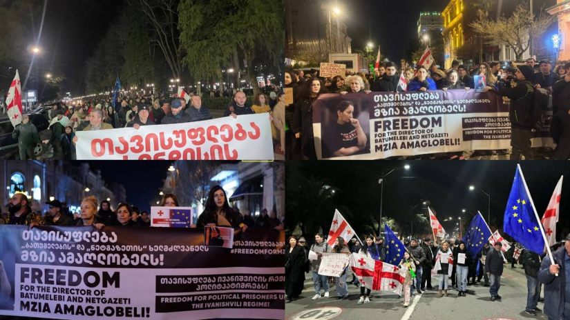 "თავისუფლება სინდისის პატიმრებს" - ქუთაისში, ზუგდიდსა და ბათუმში საპროტესტო აქციების მიმდინარეობისას ოლიგარქის პოლიციის მიერ დაკავებული ადამიანების მხარდასაჭერი მარში მიმდინარეობს.