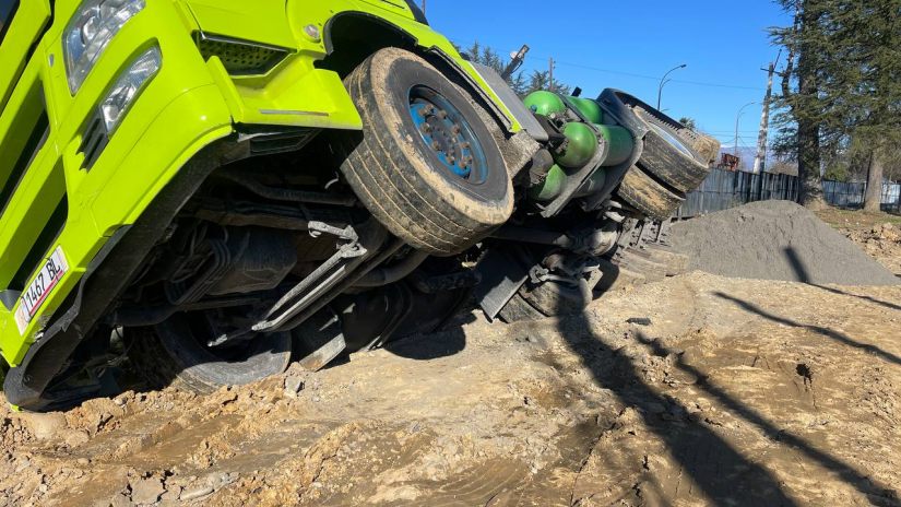 ზუგდიდის სტადიონთან, სადაც სამშენებლო სამუშაოები მიმდინარეობს, მიწა გასკდა და სატვირთო ჩავარდა. შემთხვევის შედეგად არავინ დაშავებულა.