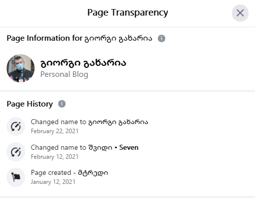 სახელშეცვლილ გვერდებს შორის მოხვდა 2021 წლის 12 იანვარს შექმნილი გვერდი, რომელსაც თავდაპირველად "მტრედი" ერქვა, შემდეგ "შვიდი" ბოლოს კი - გიორგი გახარია გახდა.