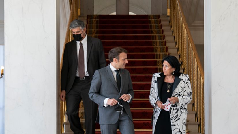 საქართველოს პრეზიდენტმა ემანუელ მაკრონს საქართველოს ოკუპირებულ ტერიტორიებზე არსებული მძიმე ჰუმანიტარული ვითარების, საოკუპაციო რეჟიმის მიერ ადამიანის უფლებების დარღვევებისა და ადამიანთა გატაცებების შესახებ ინფორმაცია მიაწოდა.