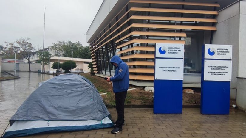 პროტესტი რუსთავის ციხესთან - მოქალაქემ მიხეილ სააკაშვილის მხარდასაჭერად ადგილზე კარავი გაშალა.