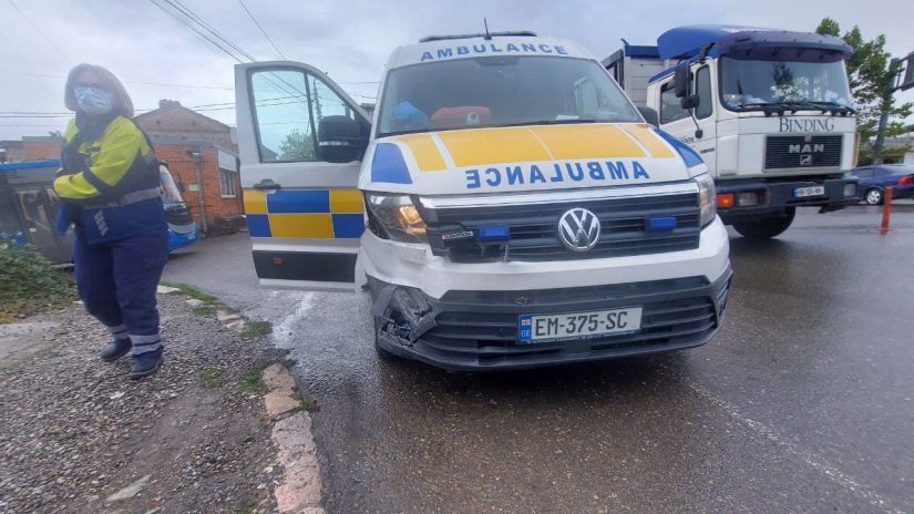 ქუთაისისა და რუსთაველის ქუჩების კვეთაზე არსებულ წრიულზე სასწრაფო- სამედიცინო დახმარების ბრიგადას მსუბუქი ავტომობილი შეეჯახა.