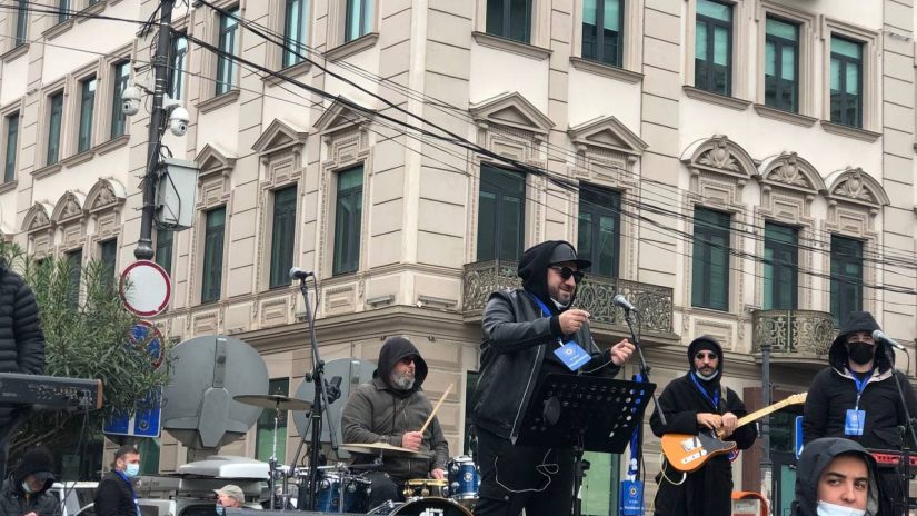 "ქართული ოცნების" აქციას მუსიკალურად გელა გნოლიძის ბენდი გააფორმებს. მუსიკოსები უკვე თავისუფლების მოედანზე დამონტაჟებულ სცენაზეა არიან და 5 საათისთვის ემზადებიან.