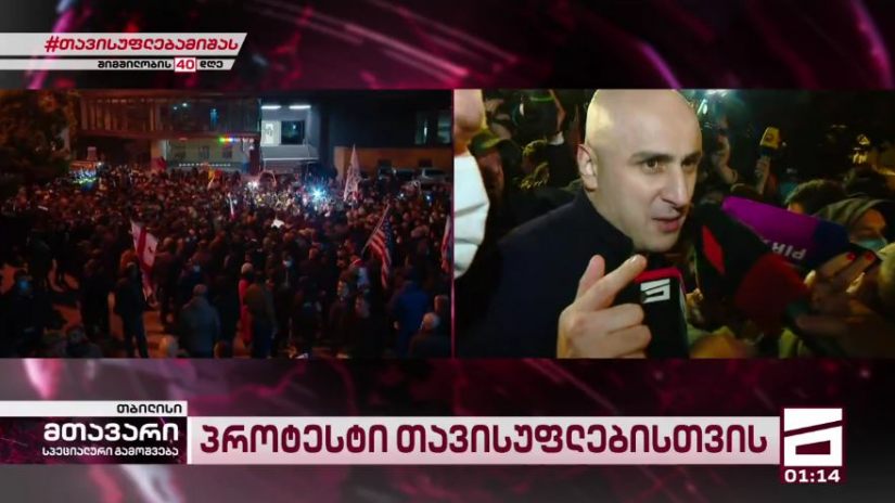 ხმაურია ამ წუთებში კანცელარიის შენობასთან, სადაც სამართალდამცველებმა ენმ-ის წევრს, ლევან ხაბეიშვილს წარწერების გაკეთების საშუალება არ მისცეს. მას ასფალტზე "თავისუფლება მიშას" დაწერა უნდოდა.