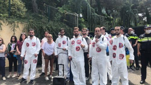 "ქვეყანას აქვს რუსული ვირუსი" - "გაბედეს" წევრებმა მთავრობის ადმინისტრაციის ტერიტორია "შეწამლეს"